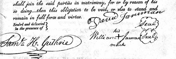 Note: William Jarman [Father? Brother?] Signed and made his mark on marriage
