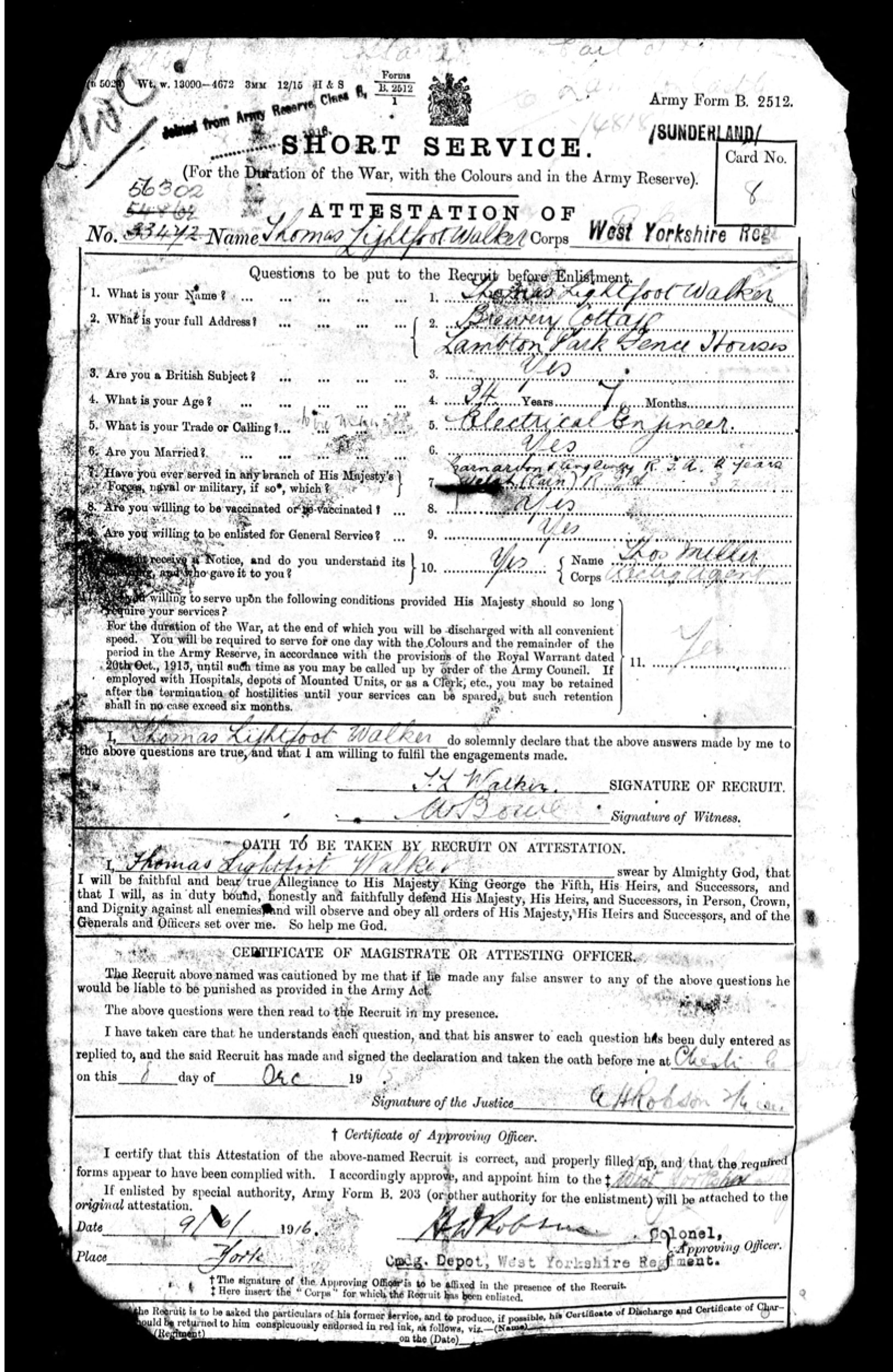Joined from Army Reserve, West Yorkshire Regt